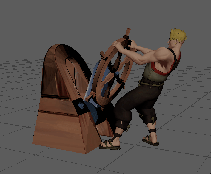 “You're going to be steering a variety of ships - some heavy, some fast, some outrageous. I wanted to have the player who's in charge of the helm look like they're really working to maneuver these contraptions. For now, we're blending between four animation states (down, up, left, right) using something called a Blend Tree in Unity.”